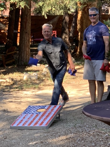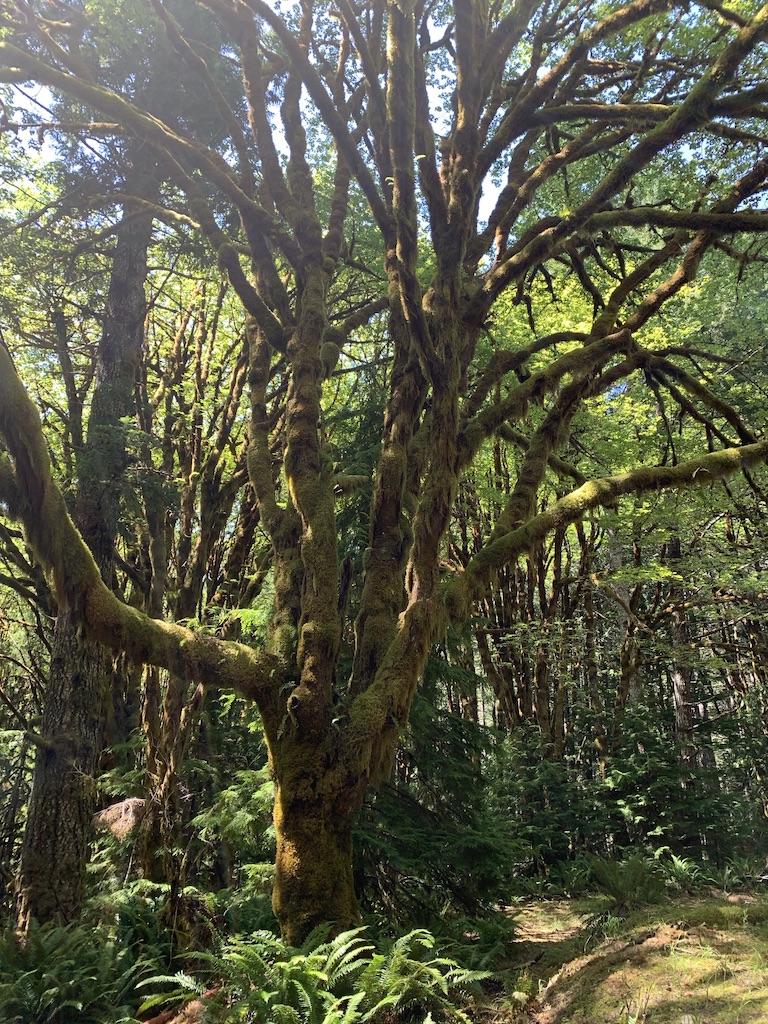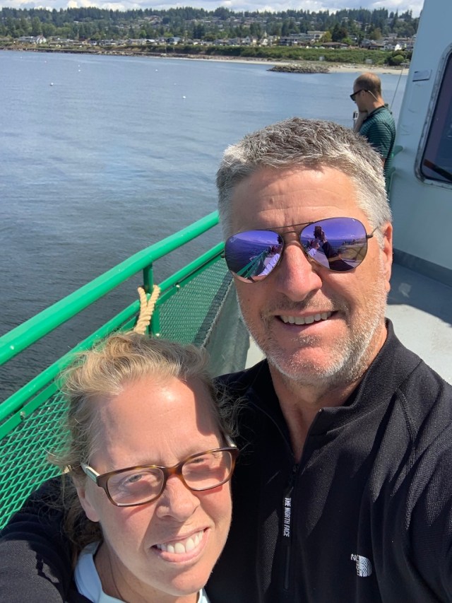 We originally had planned to try to get a “walk in” campsite at Cougar Rock campground in Mt. Rainier National Park – meaning that we take our chances – arrive early & hope there is a campsite for us. Given our planned dates there were Saturday & Sunday, I rethought and decided it was not a good idea. So we booked at a RV campground a bit further away from the National Park and it was a great decision. Harmony Lakeside RV Park was such a nice campground – near a lake but also with live music (and a dance floor) down by the lake that Saturday night. Given our late start after yoga & the Central Market in Poulsbo, we arrived with enough time to get things set up, walk around the campground and down to the shoreline and have dinner. When the band began to play and the evening light dimmed, we wandered down to hear them play and had the best time dancing together. First, though, B did his own dance at our campsite. He was ready to go enjoy the show.